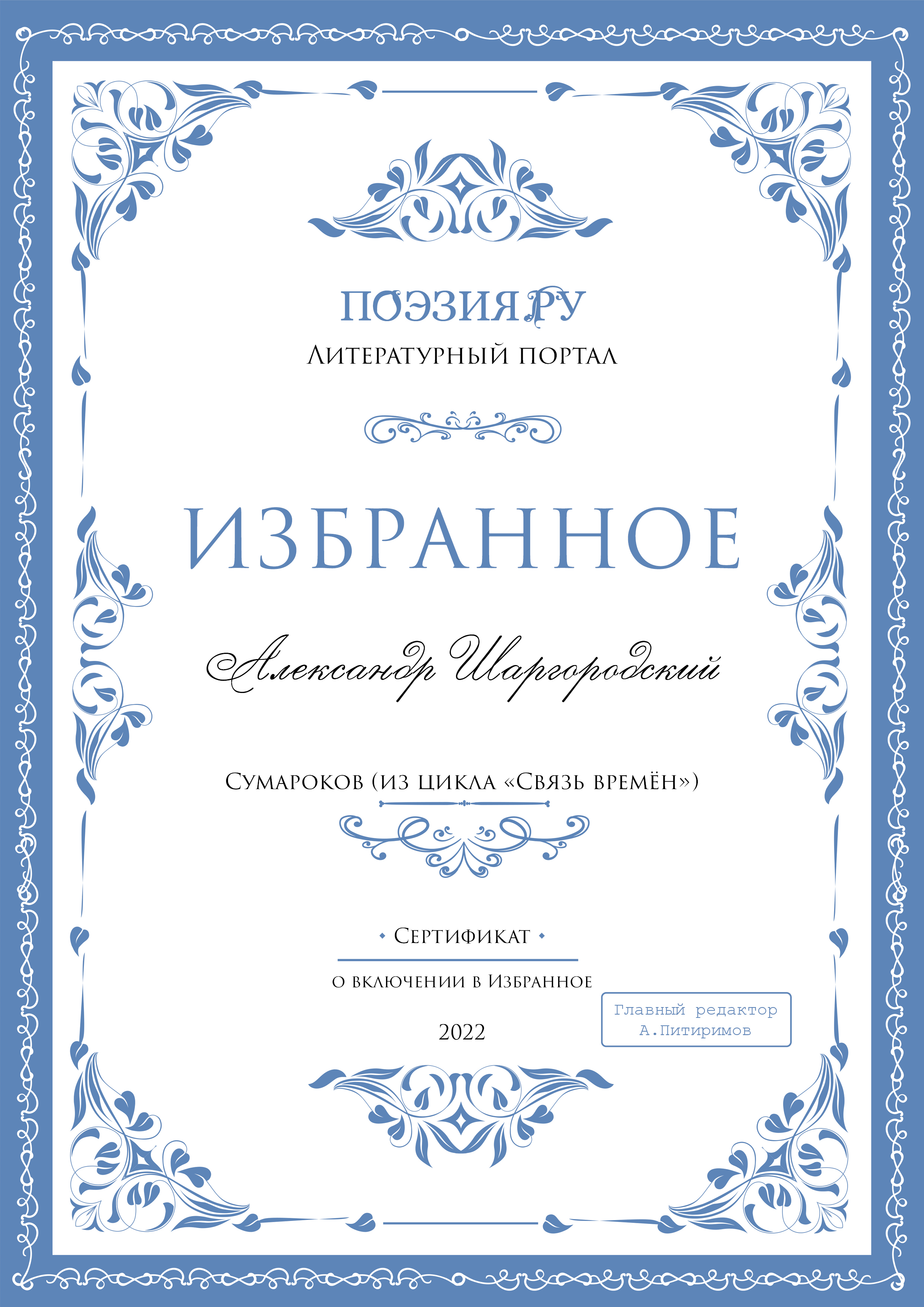 | Сумароков (из цикла "Связь времён") | Эпос | 31-03-2003 04:18:24 | 1 | 4 | 3881 | ||