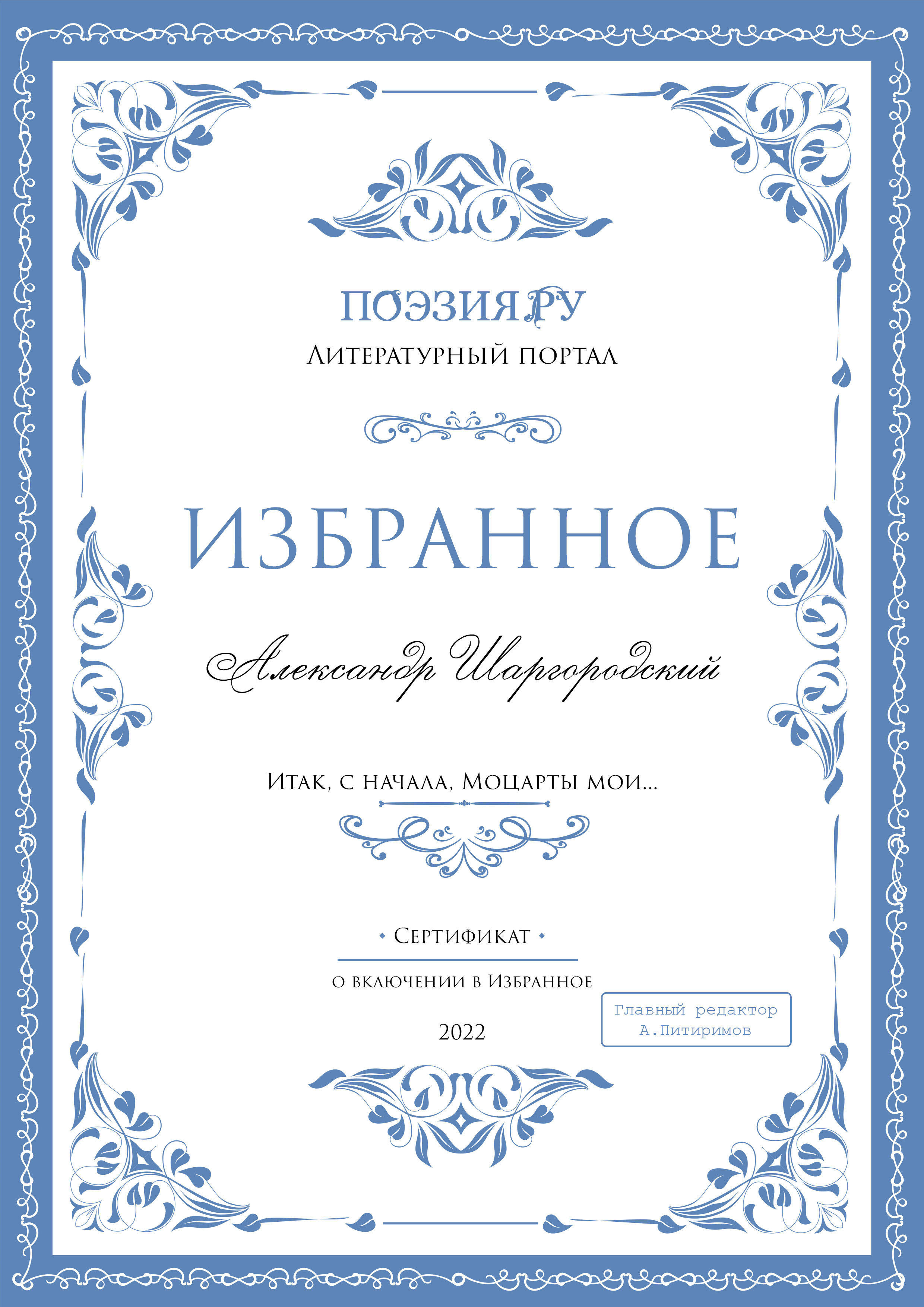 | Итак, с начала, Моцарты мои... | Песни | 07-07-2003 08:40:03 | 1 | 3 | 3579 | ||