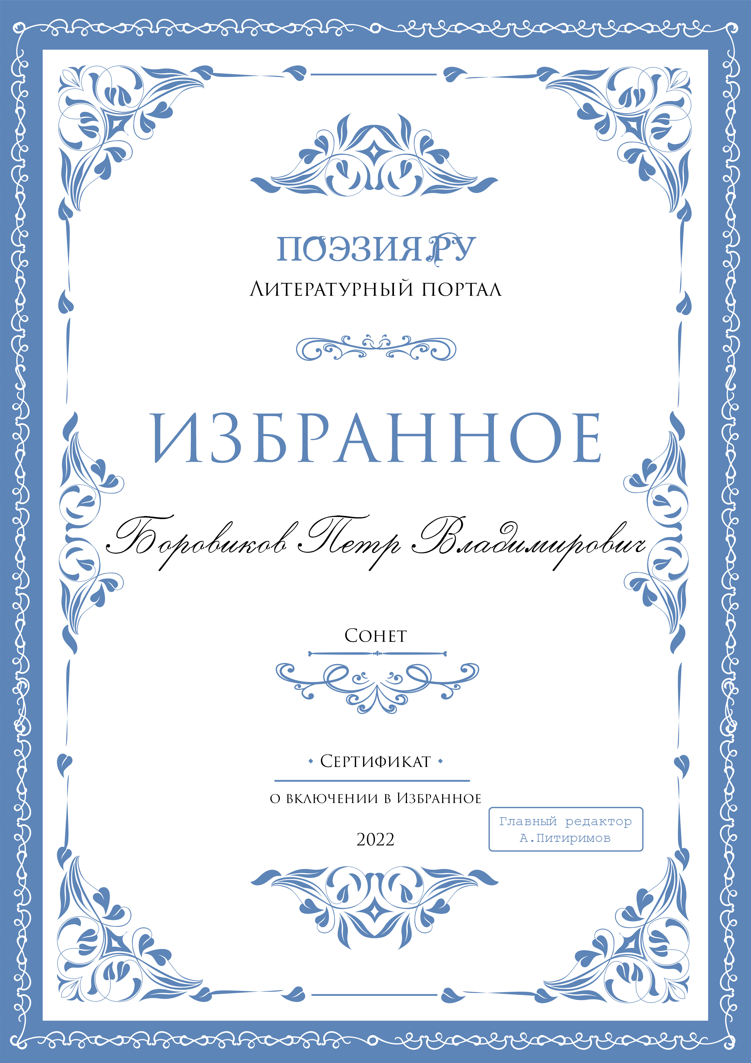 Книжка Петра Боровикова - интимная, и от этого значительная, серьезная, требующая от получателя книги-письма внимания и работы души и памяти. Петр Боровиков - поэт самостоятельный, сложившийся и в то же время непрерывно ищущий - слова, формы, точной метафоры, смысла, той интонации, которая делает его стихи похожими на личные письма. И дарят радость, ощущение маленького счастья на фоне неизбежного изначального трагизма жизни. Так хочется пожелать П.Боровикову новых свершений, новых открытий, новых читателей и слушателей его "колебаний голоса".