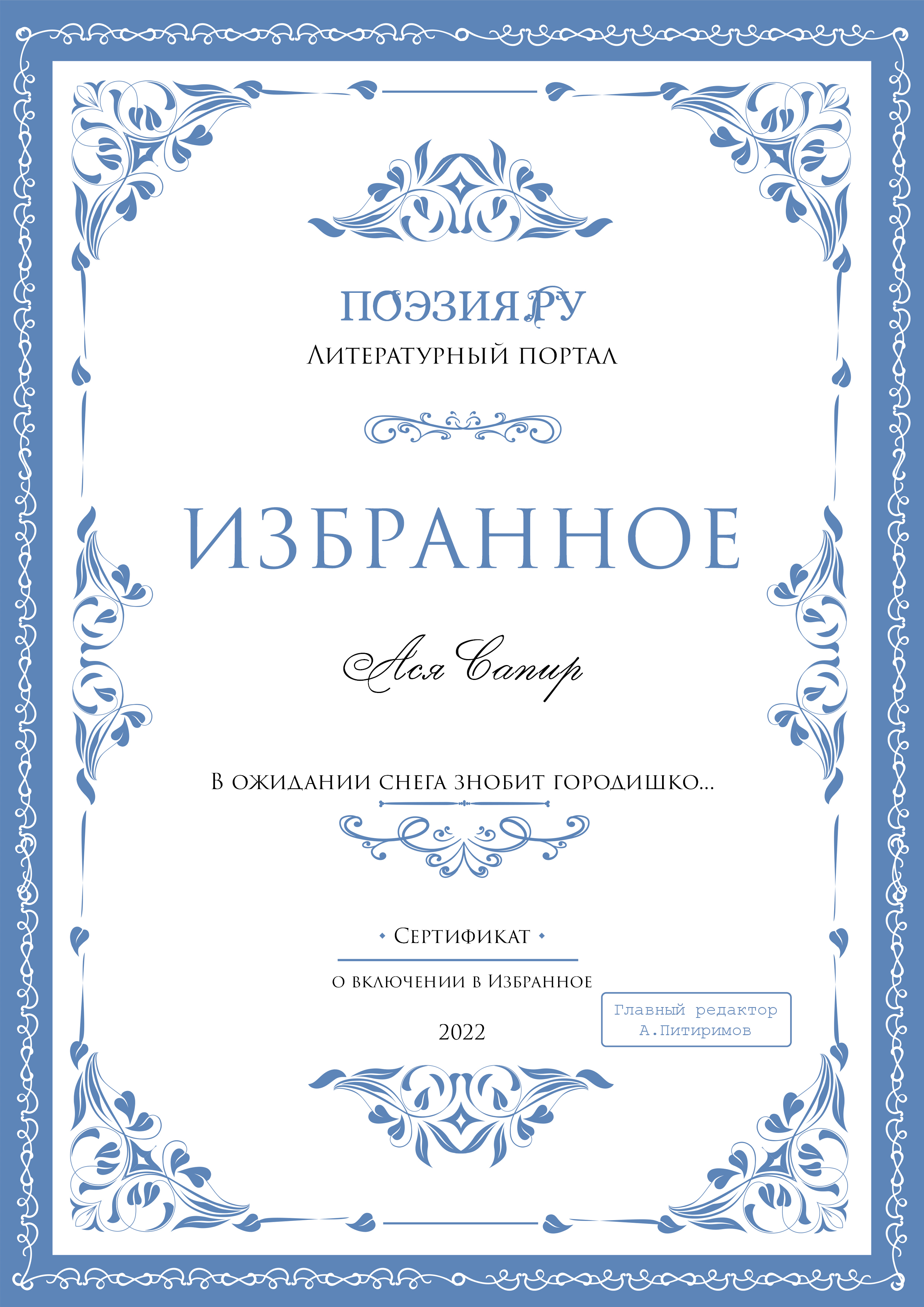 | "В ожидании снега знобит городишко ..." | Пейзажная лирика | 02-12-2010 17:54:28 | 1 | 10 | 3031 | ||