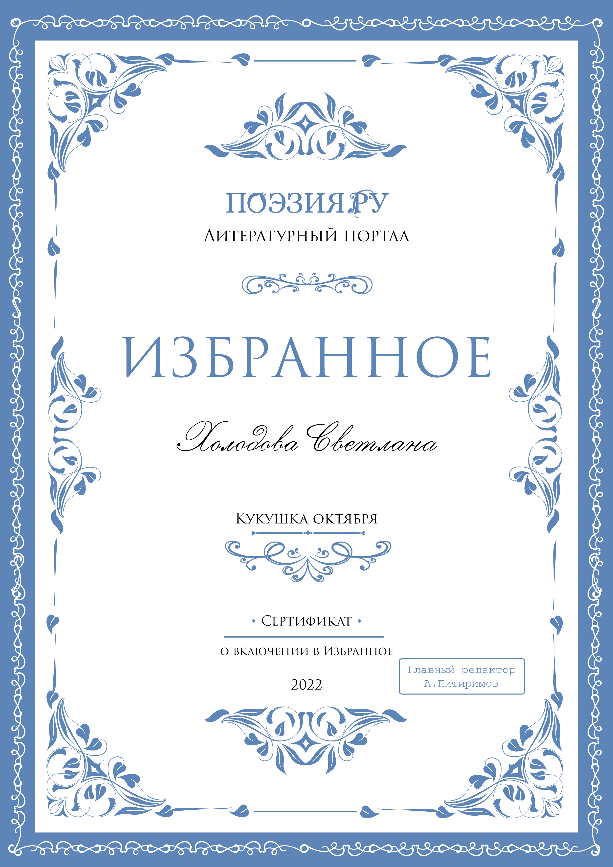 | Кукушка октября | Циклы стихов | 15-05-2011 10:21:26 | 1 | 7 | 5618 | ||