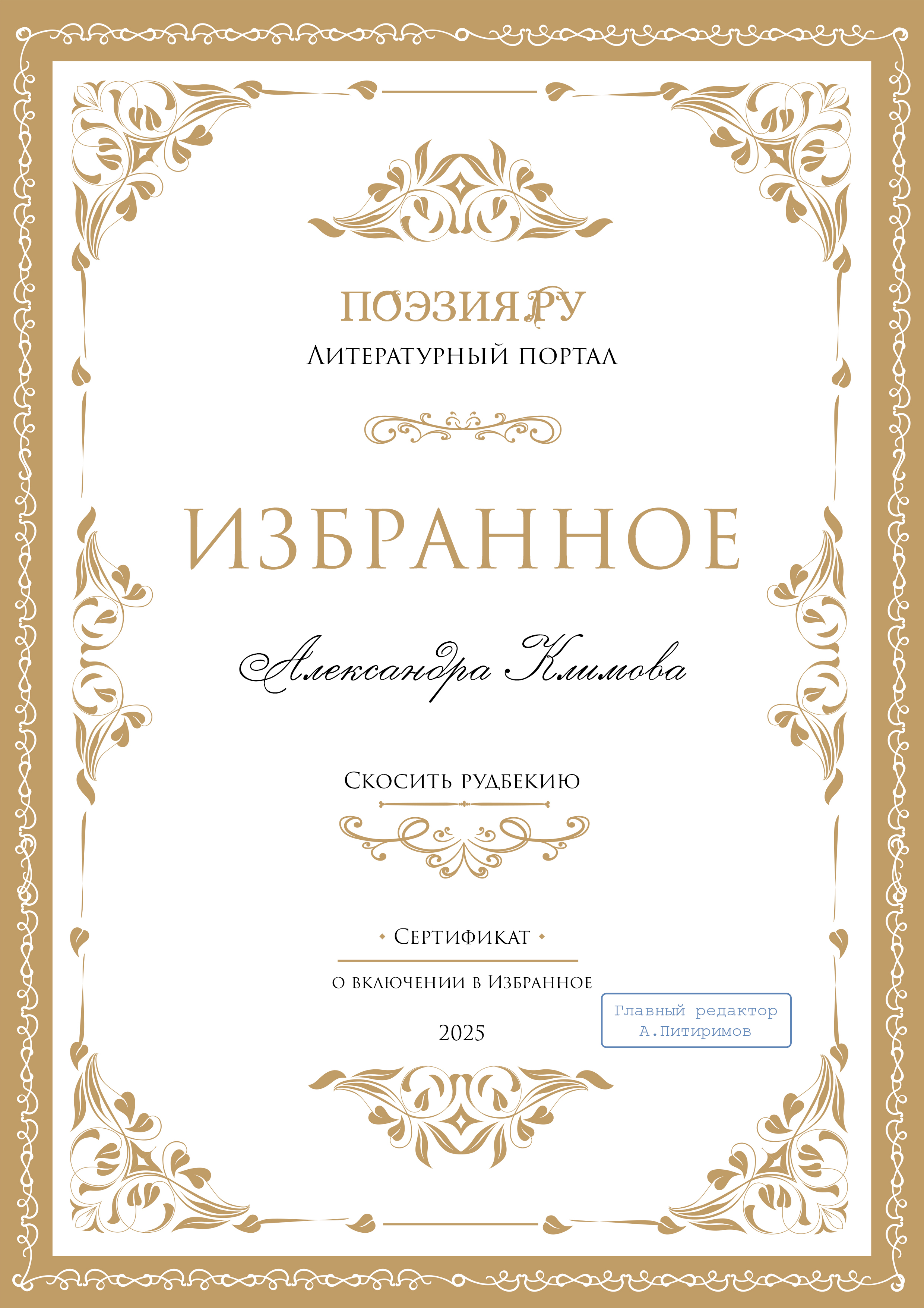 | Скосить рудбекию | Малая проза | 22-11-2024 20:46:51 | 12 | 12 | 4085 |