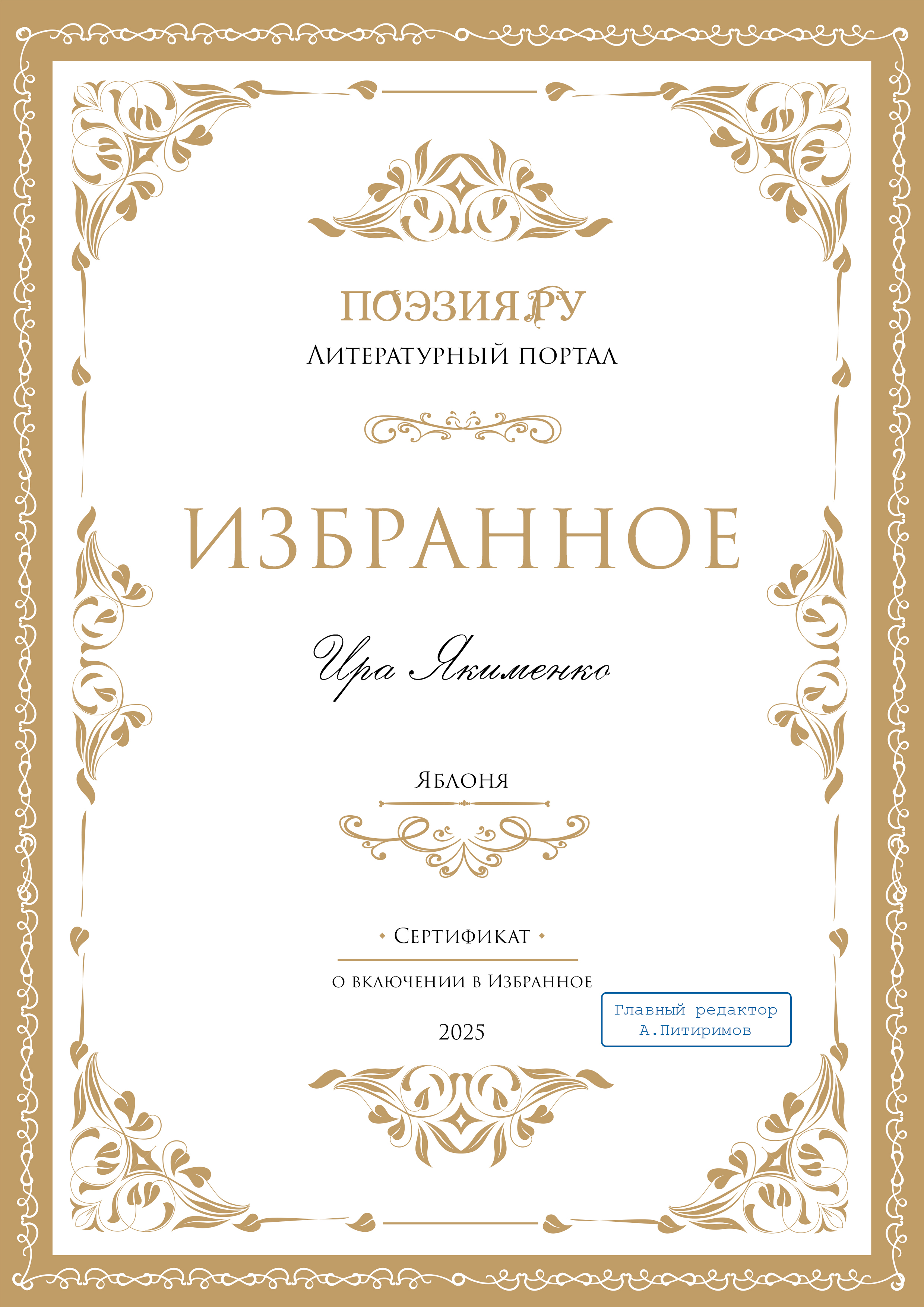 | Яблоня | Лирика | 13-03-2025 01:31:17 | 9 | 1 | 741 | ||