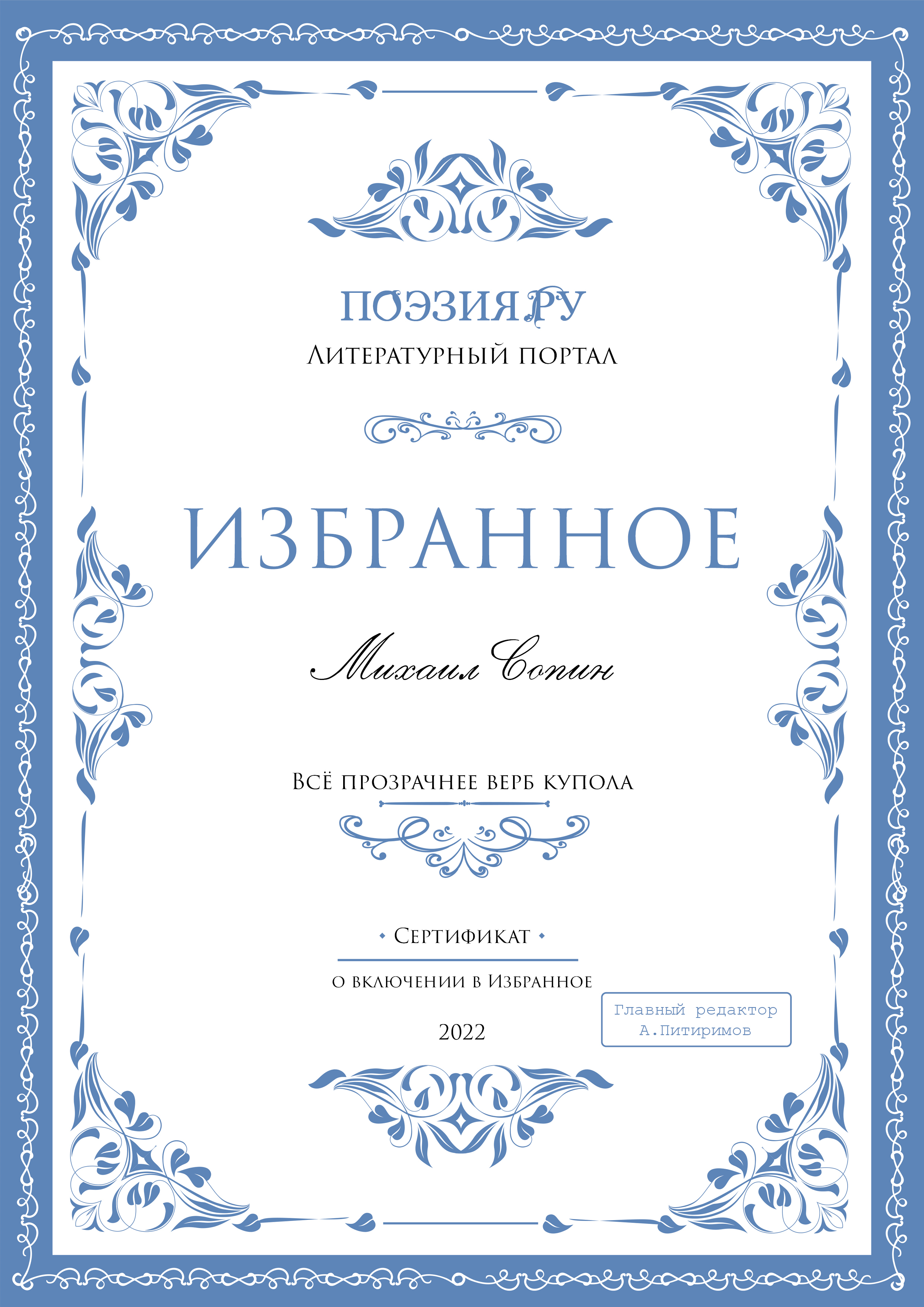 | Всё прозрачнее верб купола | Пейзажная лирика | 12-10-2003 00:02:30 | 0 | 0 | 2596 | ||