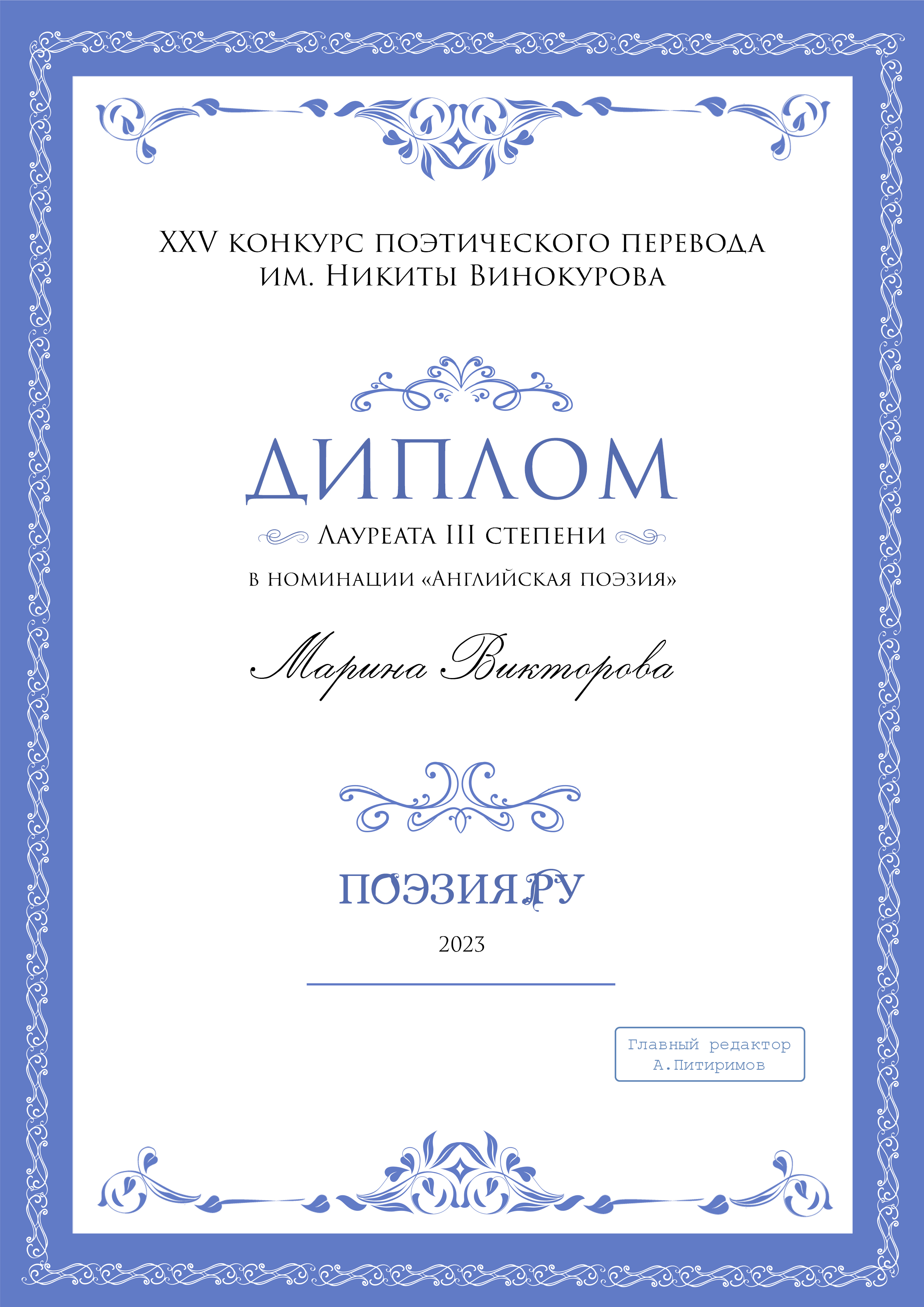 | Диптих поэту | Любовная лирика | 01-04-2015 17:25:23 | 1 | 0 | 1433 |