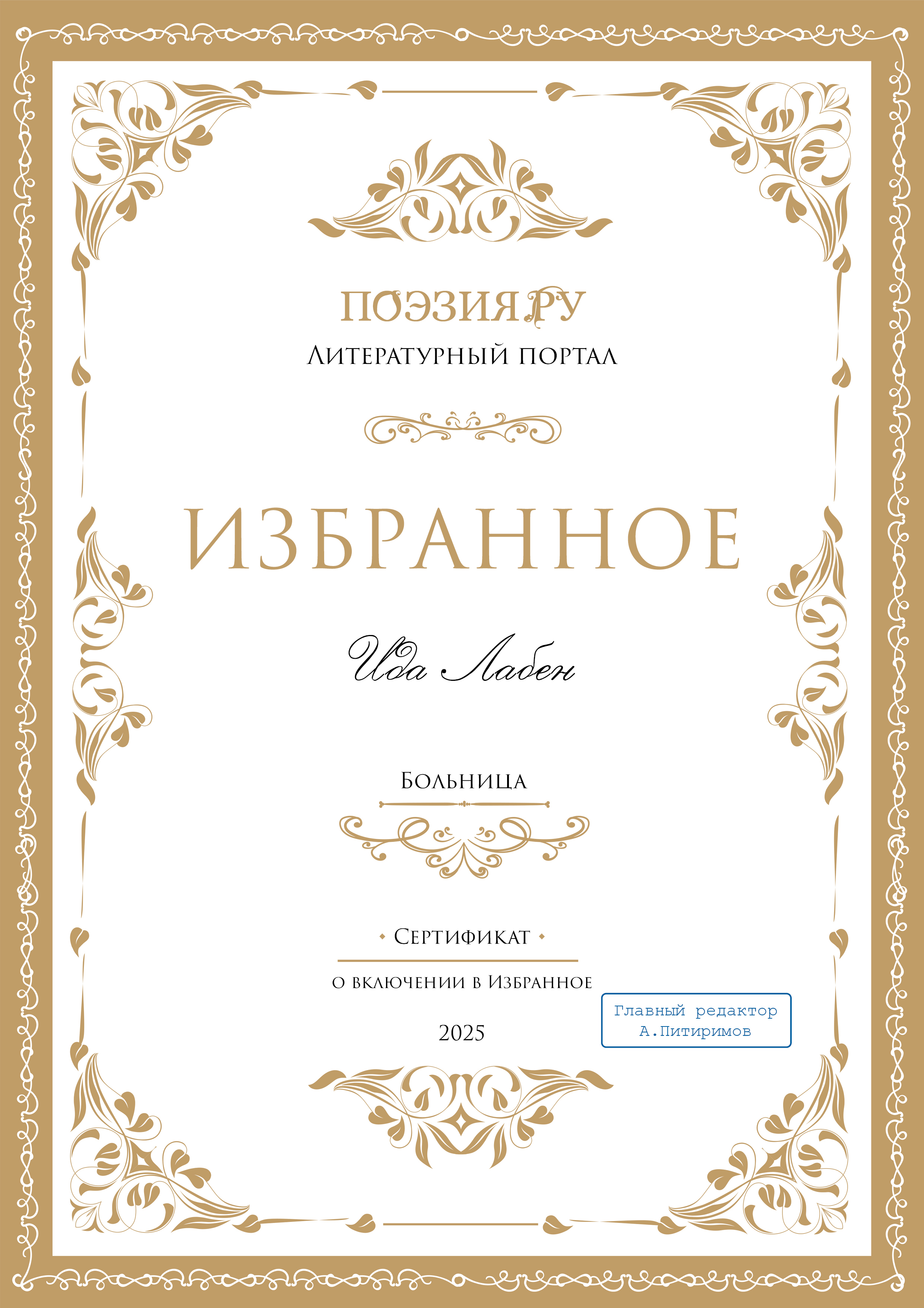 | Больница | Лирика | 25-04-2025 17:46:41 | 11 | 0 | 2520 | ||
