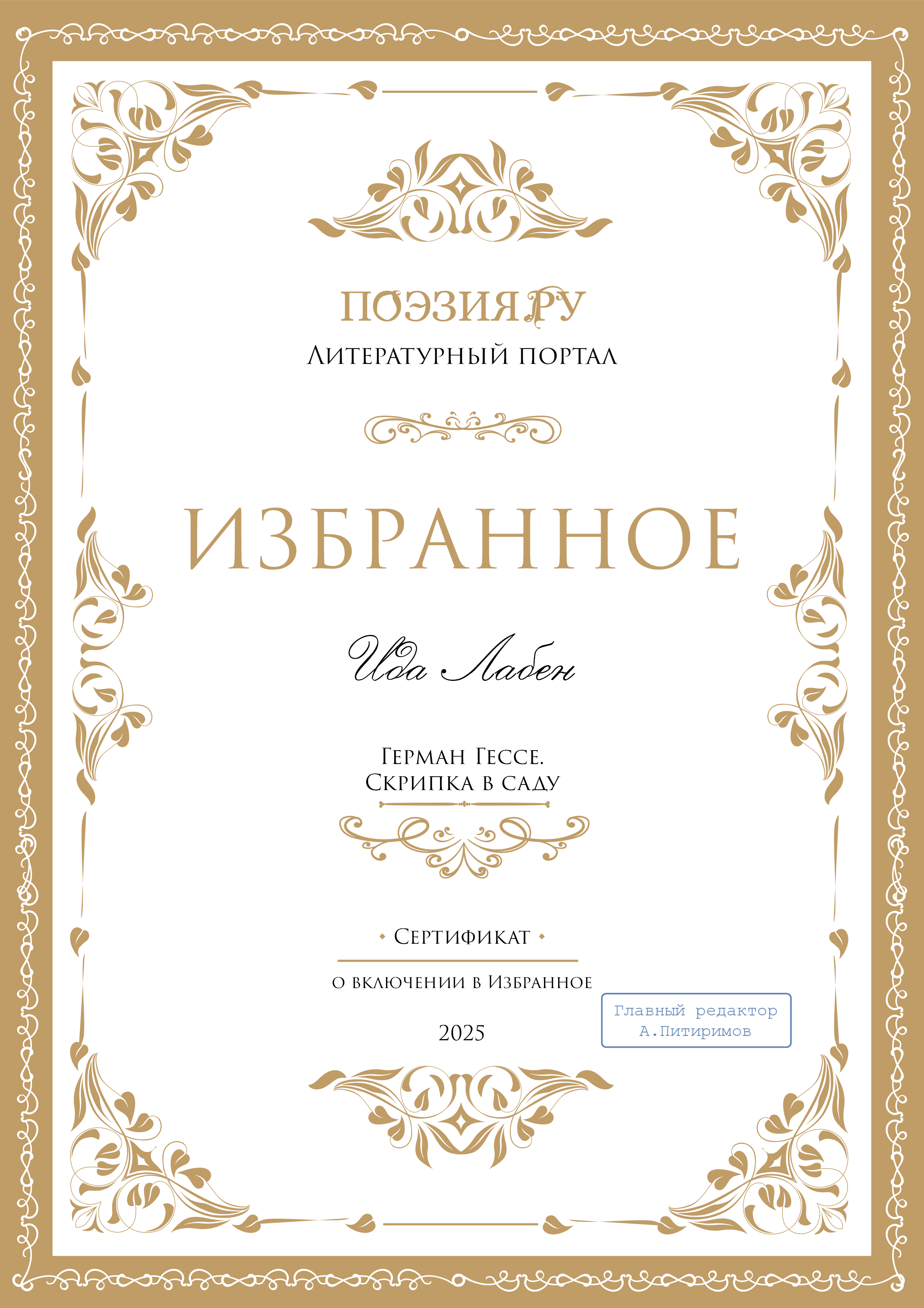 | Герман Гессе. Скрипка в саду | Переводы | 09-07-2025 11:00:57 | 5 | 0 | 3046 | ||