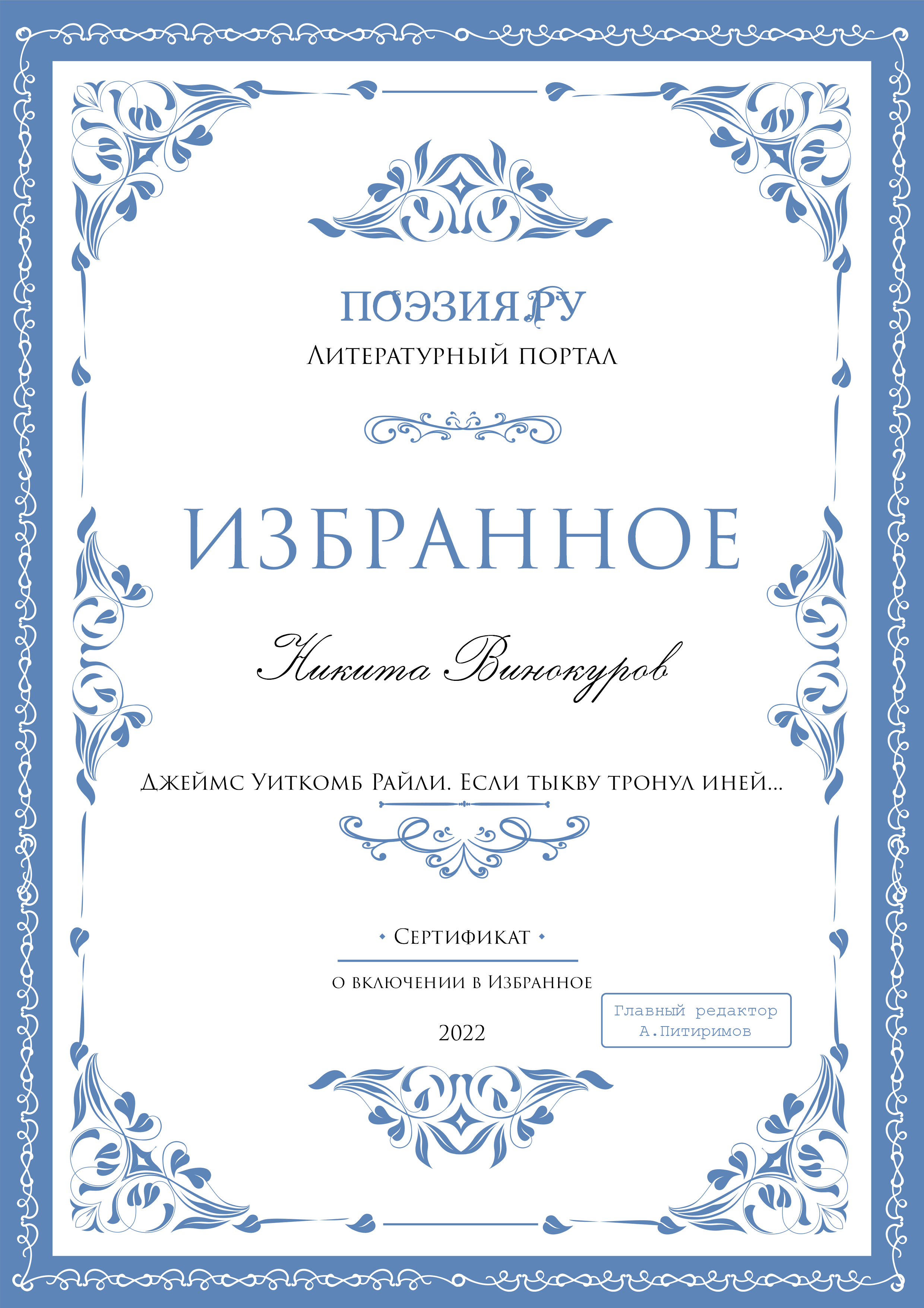 | Джеймс Уиткомб Райли. Если тыкву тронул иней... | Переводы | 11-07-2007 14:56:20 | 0 | 4 | 12567 | ||