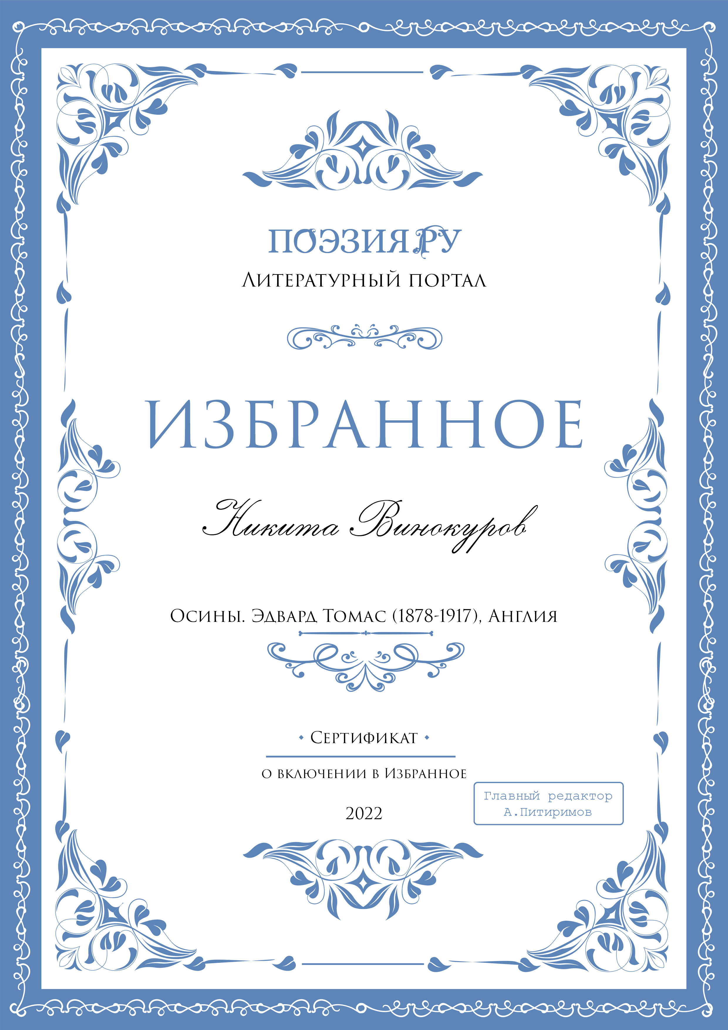 | Осины. Эдвард Томас (1878-1917), Англия | Переводы | 26-09-2008 00:08:43 | 0 | 7 | 3241 | ||
