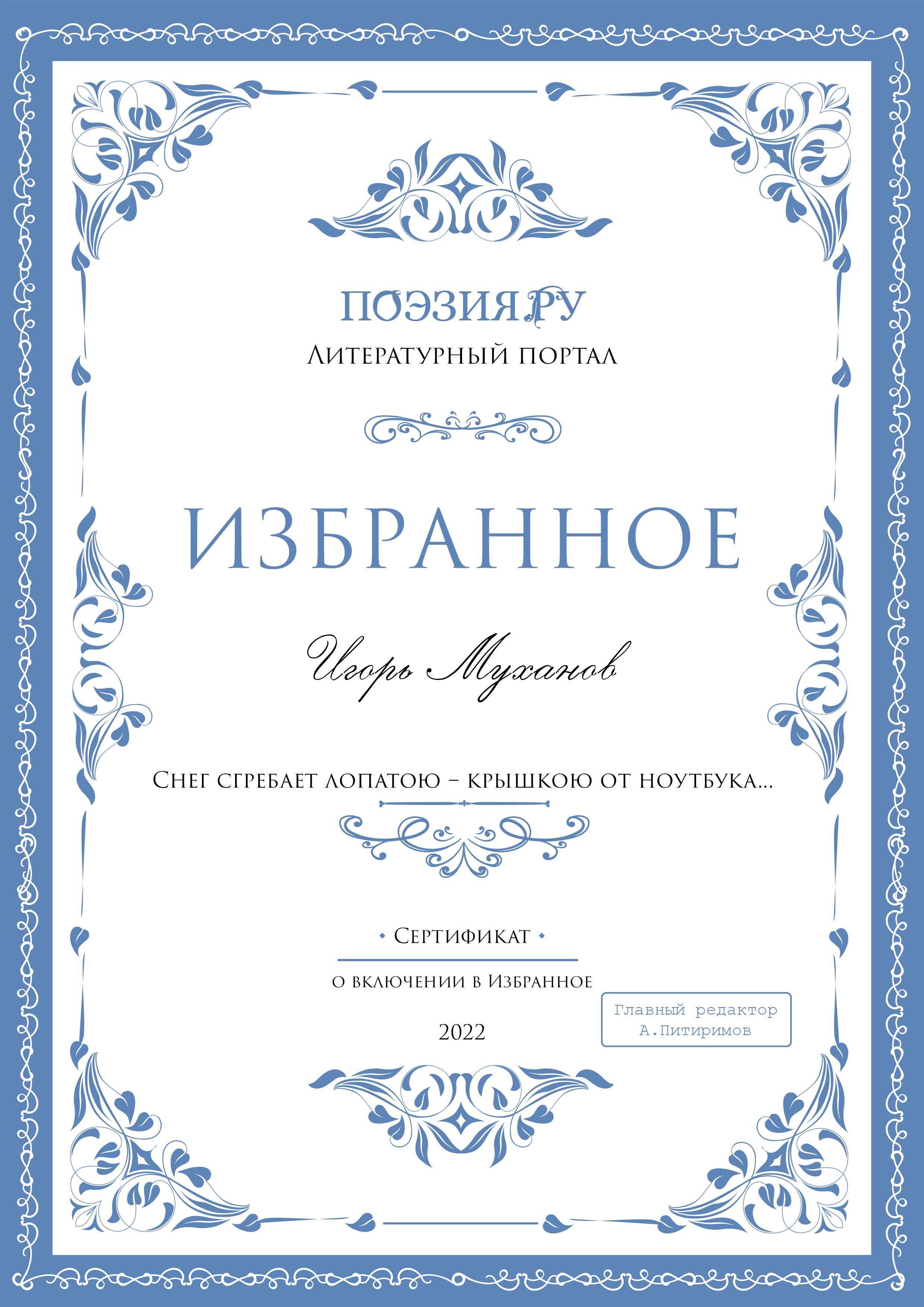 | Снег сгребает лопатою – крышкою от ноутбука... | Любовная лирика | 13-05-2014 20:30:51 | 2 | 0 | 2010 | ||