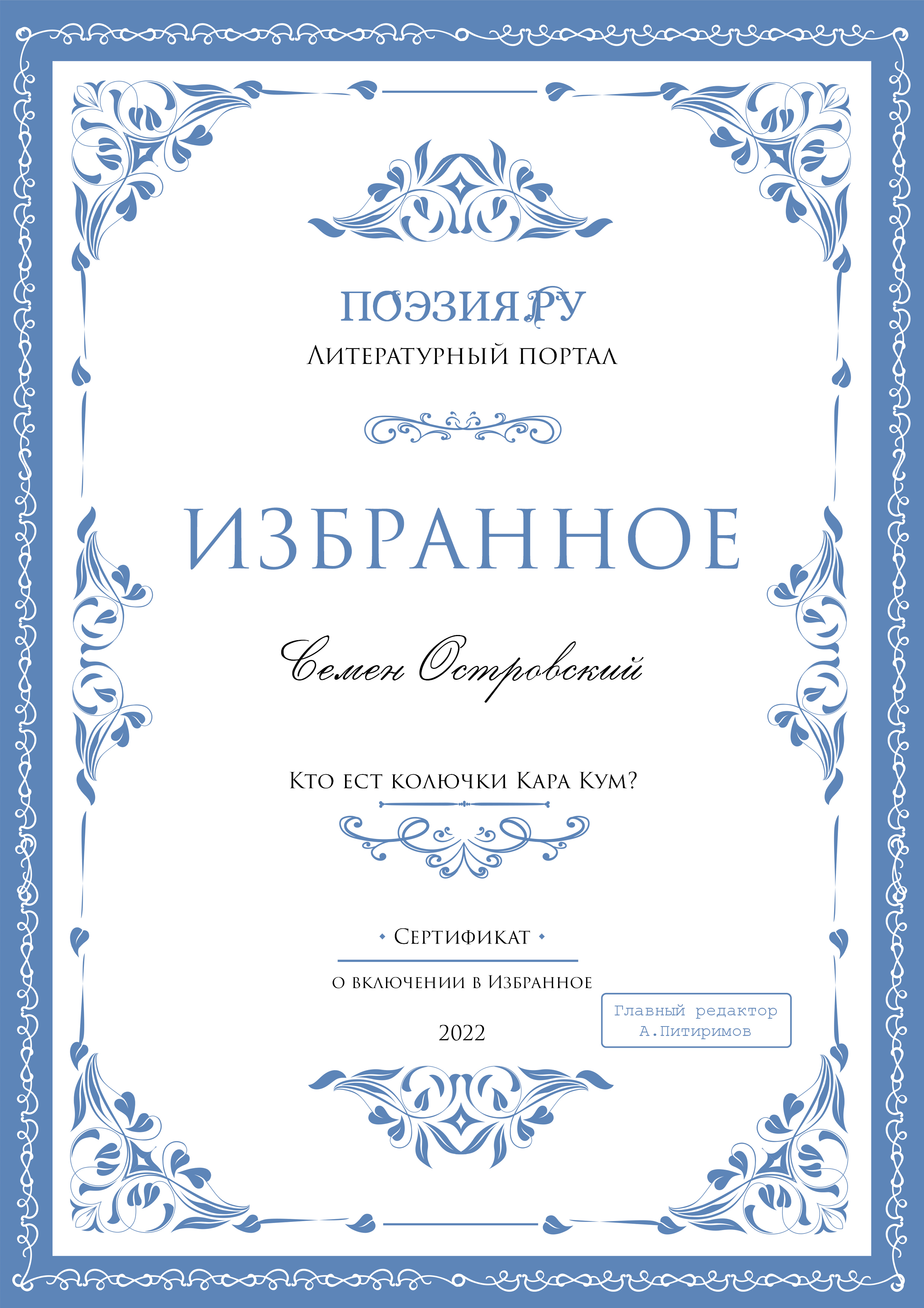 | Кто ест колючки Кара Кум? | Лирика | 31-01-2018 04:19:25 | 8 | 4 | 1683 | ||