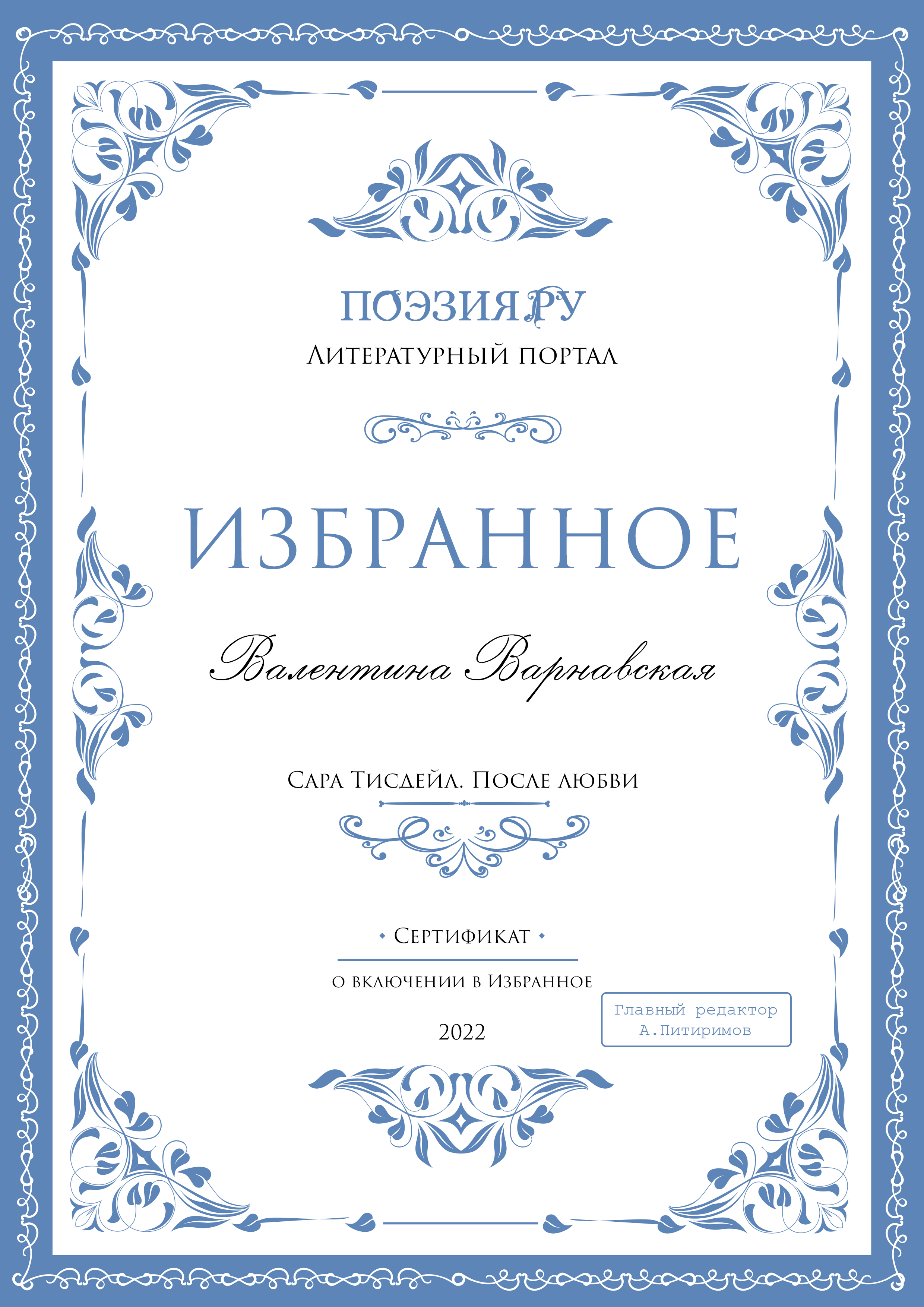 | Сара Тисдейл. После любви | Переводы | 27-06-2014 16:42:34 | 2 | 5 | 2221 | ||