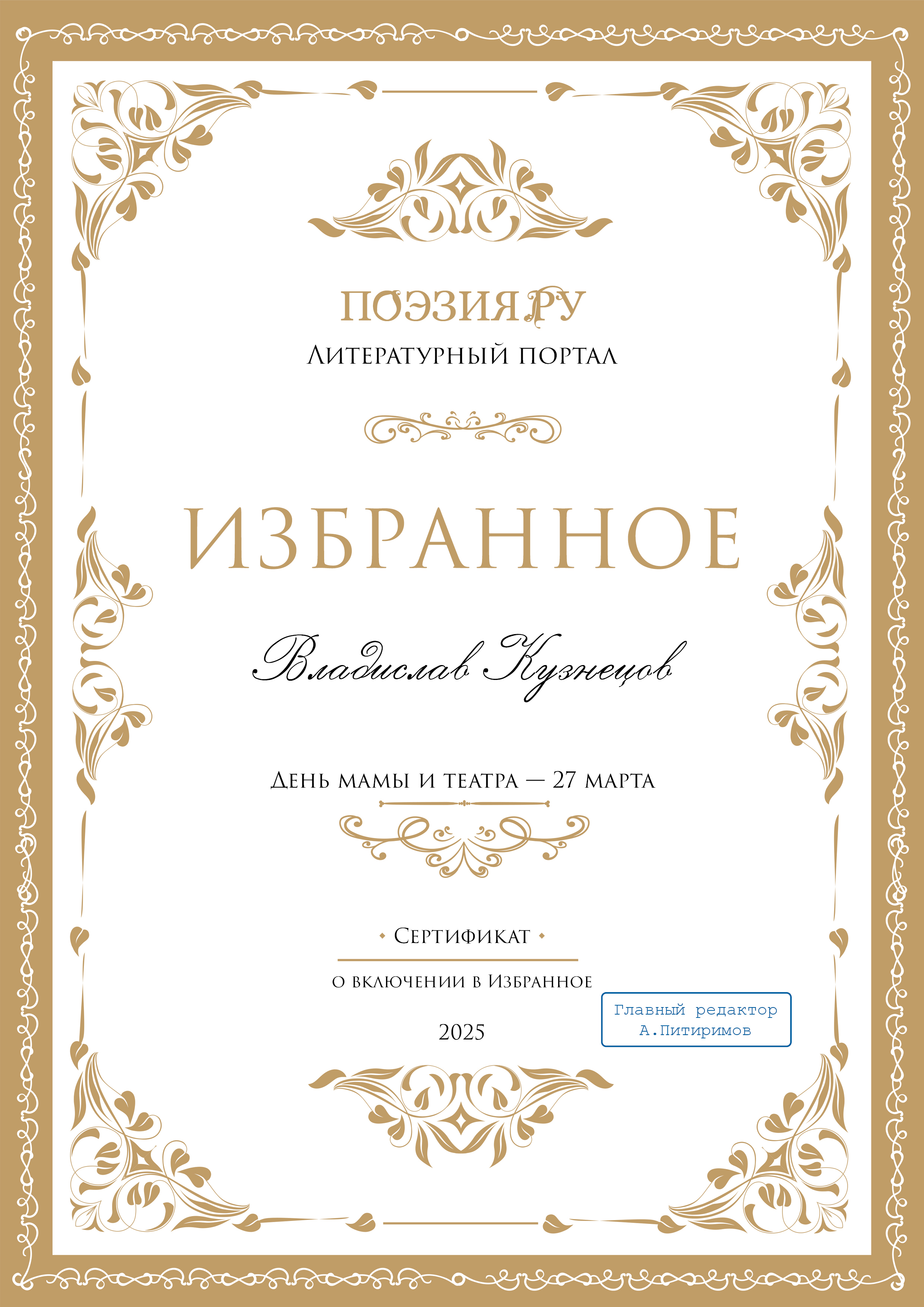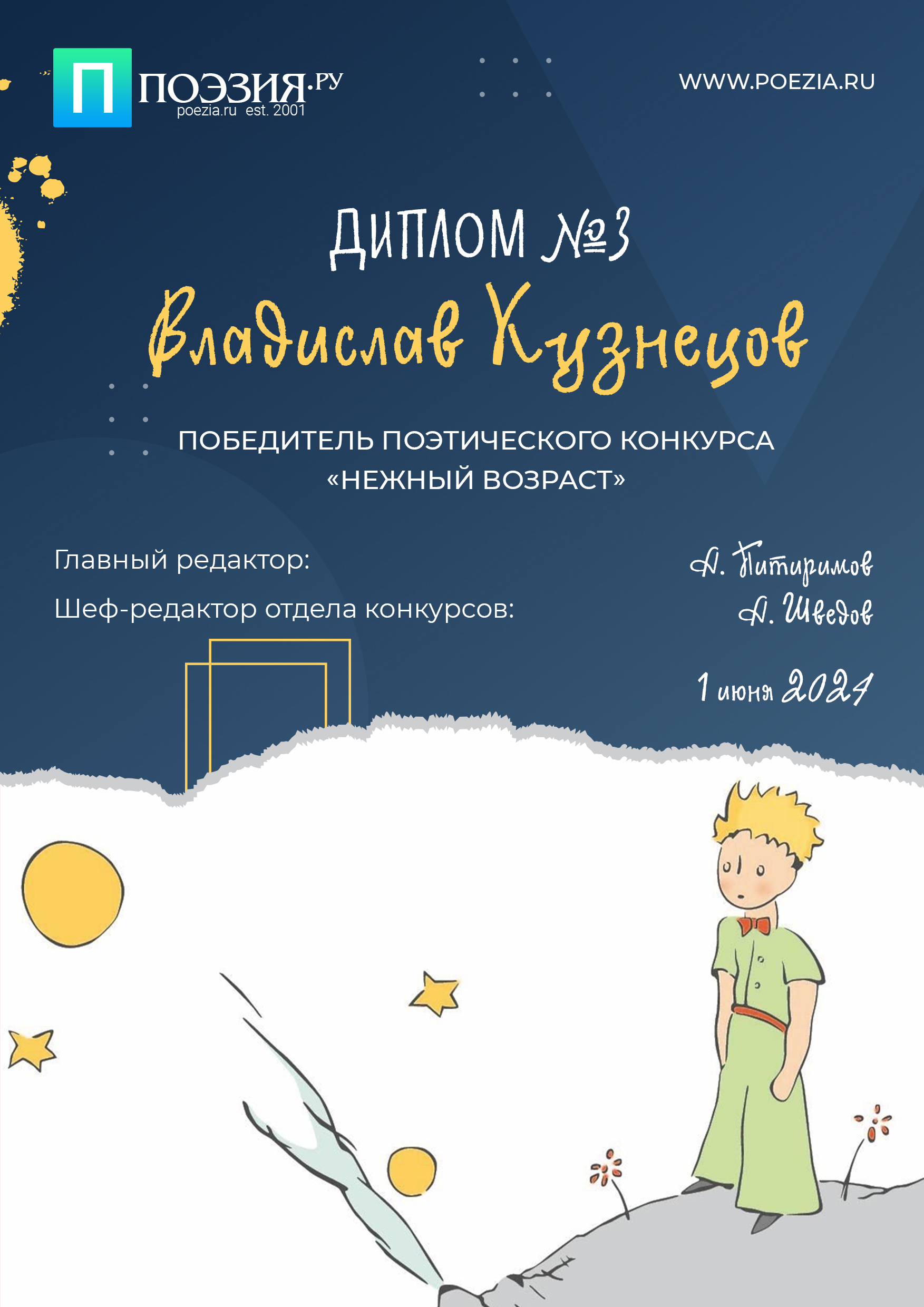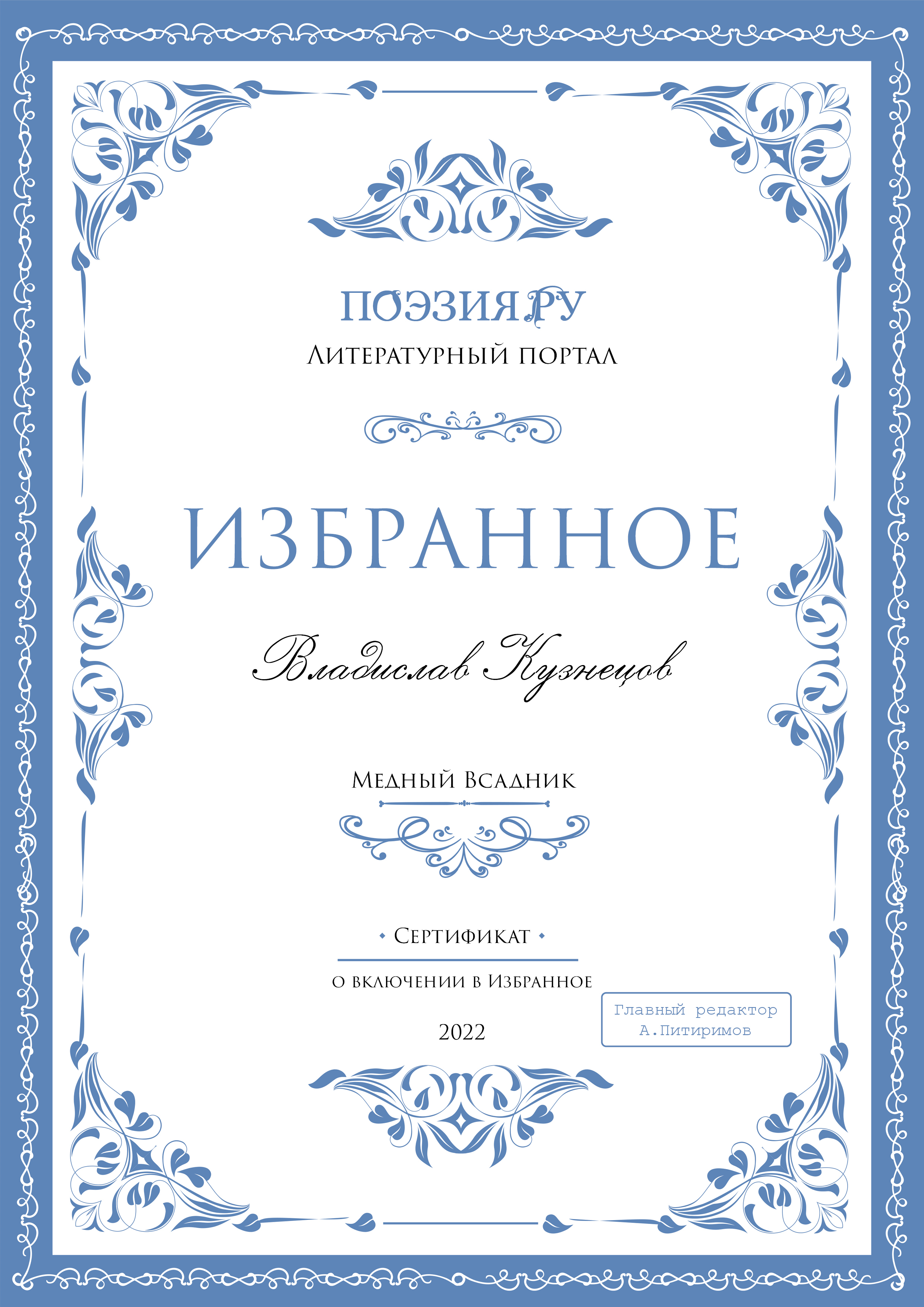 | Прощание с Мойкой. | Подражания | 30-06-2024 11:54:15 | 13 | 23 | 1086 | ||
