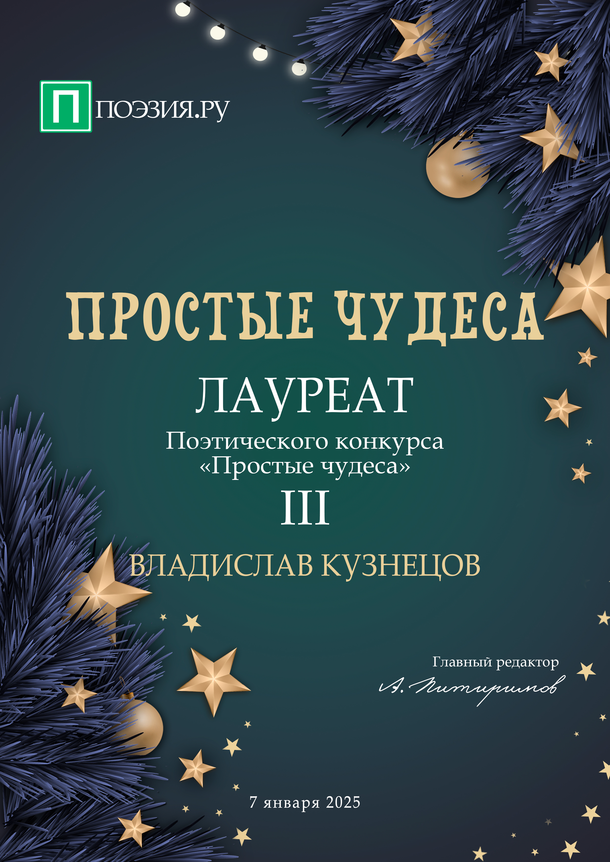 | Подборка конкурса «Простые чудеса» | Лирика | 08-01-2025 13:05:35 | 7 | 4 | 375 | ||
