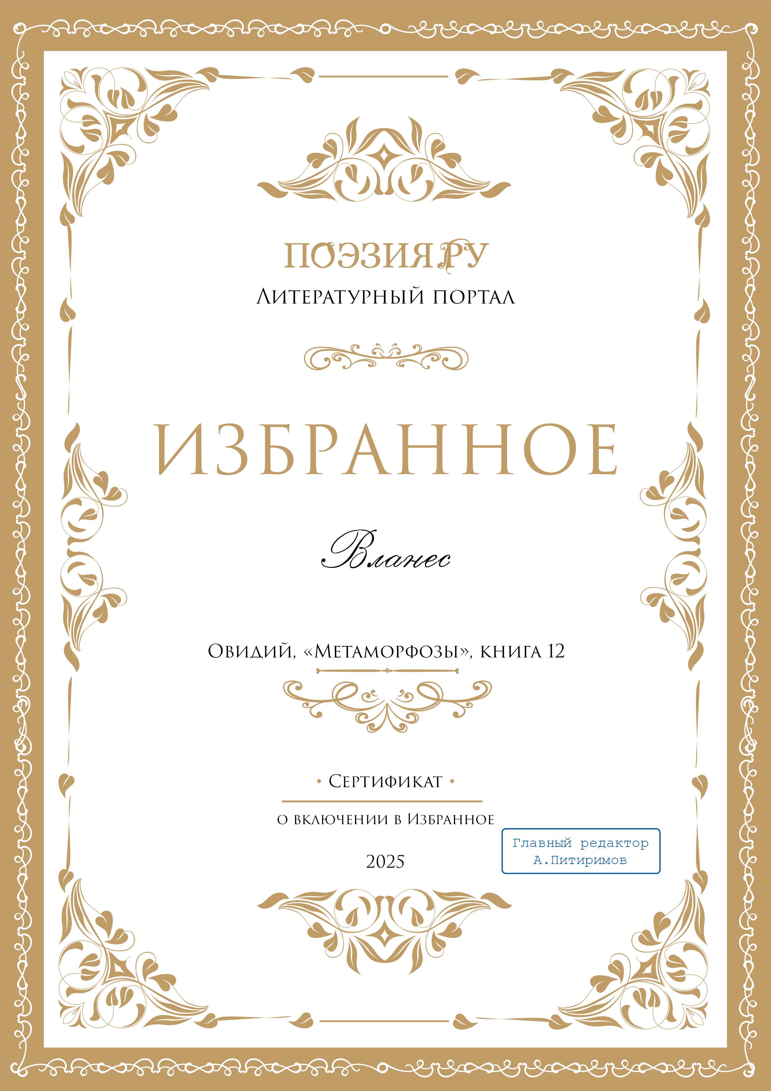 | Овидий, "Метаморфозы", книга 12 | Переводы | 14-03-2025 01:27:39 | 3 | 10 | 837 | ||