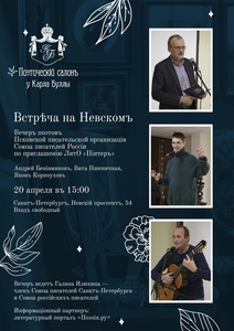 По согласованию с Редколлегией здесь может быть размещено ваше объявление: анонсы творческих вечеров, фестивалей, премий и др., а также коммерческая реклама. Новые объявления отображаются на Главной странице. Объявления некоммерческого характера публикуются бесплатно и принимаются по адресу: info@poezia.ru.