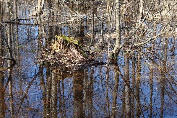 Весной в затопленном ольшанике,
