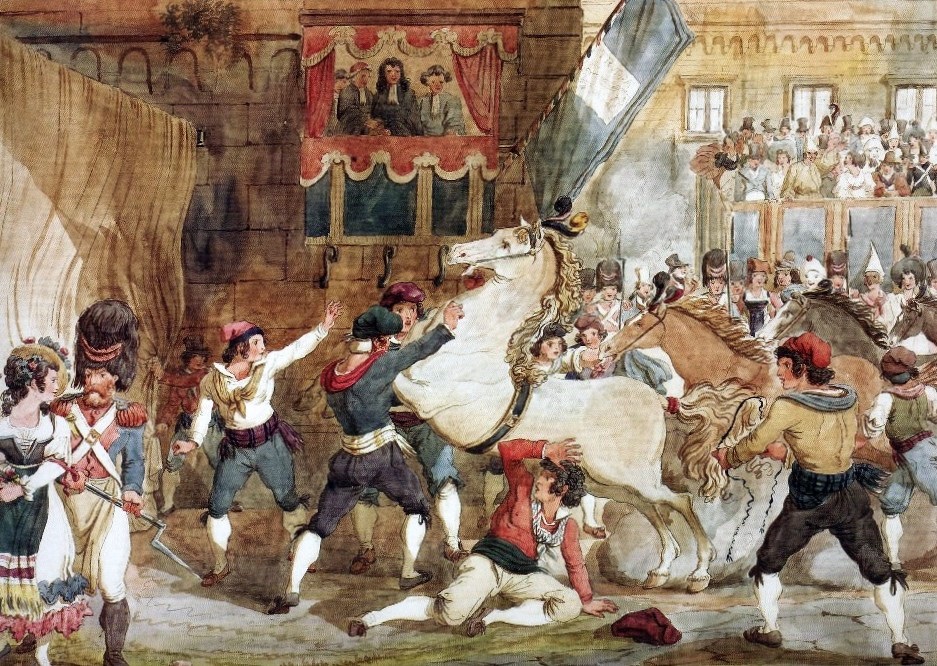 * Во время Карнавала одним из самых популярных развлечений была гонка берберских лошадей без наездников по Виа дель Корсо (находились любители, пытавшиеся остановить лошадь на полном скаку)