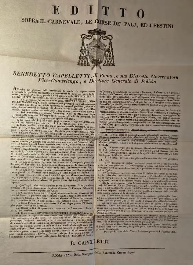* В 1832 году Папа Григорий XVI в память 18-летия Искупления объявил необычный Священный год (только для Папской области), запретив проведение Карнавала