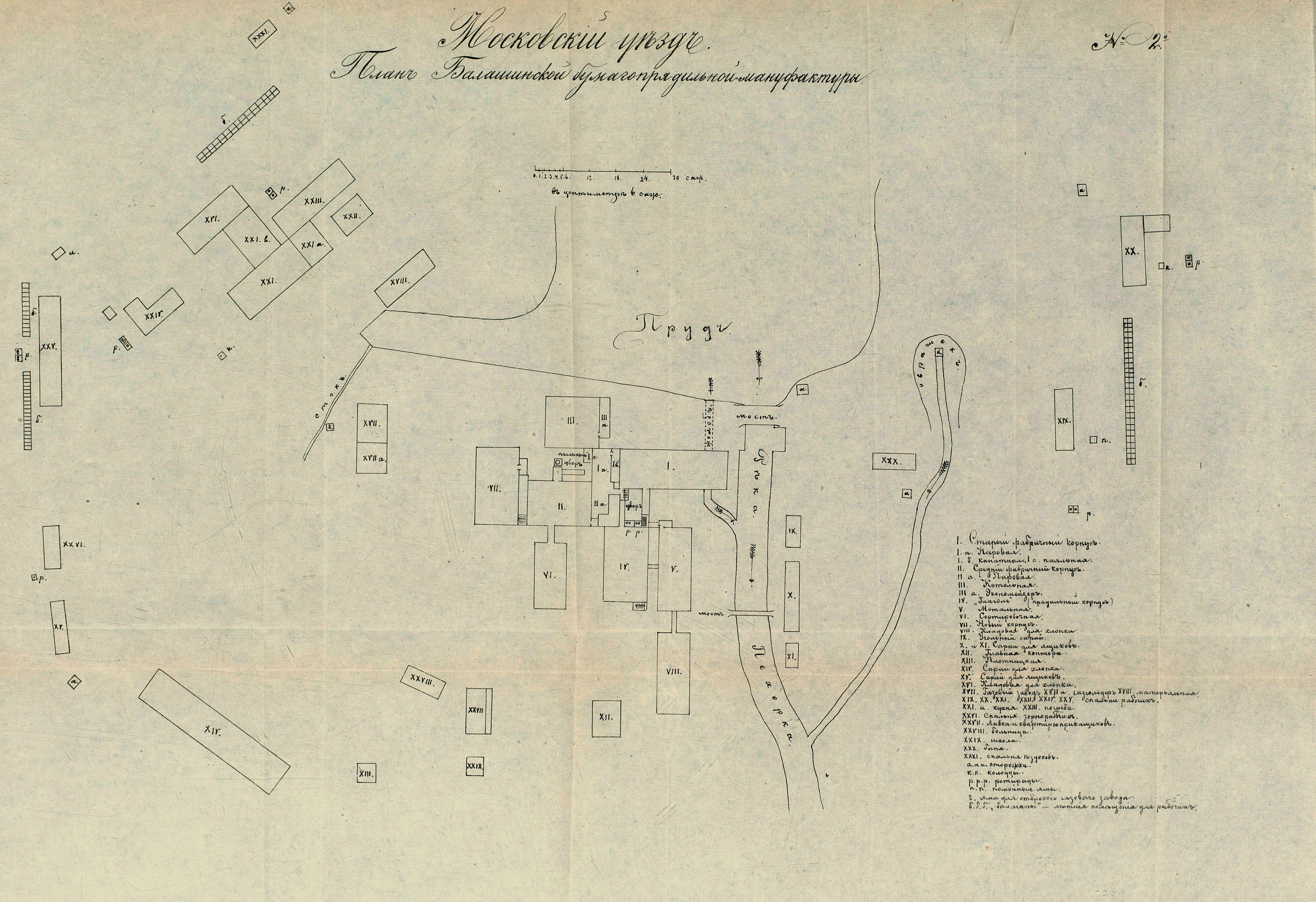 «Московский Генерал-Губернатор сообщил ходатайство Товарищества Балашинской Мануфактуры о дозволении ему открыть при селе Никольском, Московского уезда, бумагопрядильную фабрику. Из сообщенных Генерал-Адъютантом Князем Долгоруковым сведений видно, что упомянутая фабрика будет помещаться в двух каменных четырехэтажных корпусах, с тремя пристройками, одной в 5 и двумя — в 2 этажа. <…> Кроме того при фабрике устроен газовый завод <…> Газ добывается из нефти. Рабочих на фабрике 801 человек <…> Фабричные помещаются в 7-ми казармах. <…> Заключение. Хотя пунктом 1-м приложения к статье 46 Уст<ава> Пром<ышленности> <…> воспрещается устройство в Москве и уезде ее шерстопрядильных фабрик, но принимая во внимание, что закон этот состоялся главным образом в видах предупреждения лесоистребления; предполагаемая же Товариществом Балашихинской Мануфактуры к устройству бумагопрядильная фабрика будет отапливаться не одними дровами, но и торфом, — я нахожу, что приведенное узаконение не могло бы служить препятствием к дозволению устройства помянутой фабрики, посему и полагал бы: разрешить Товариществу Балашинской Мануфактуры открыть при селе Никольском, Московского уезда, бумагопрядильную фабрику <…>»51.