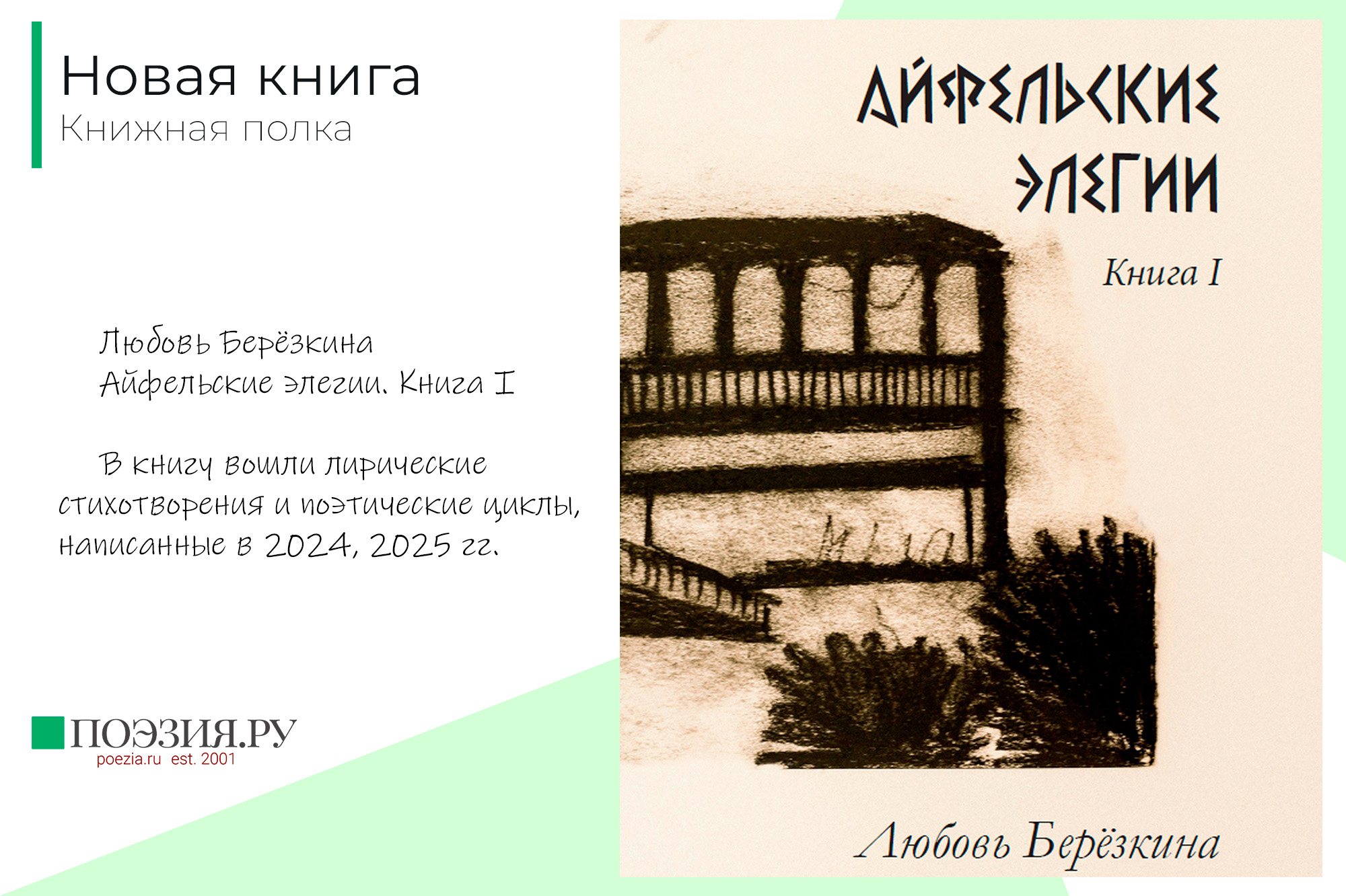 На Книжную полку Поэзии.ру добавлена новая книга Любови Березкиной «Айфельские элегии. Книга I», в которую вошли лирические стихотворения и поэтические циклы, написанные в 2024, 2025 гг.