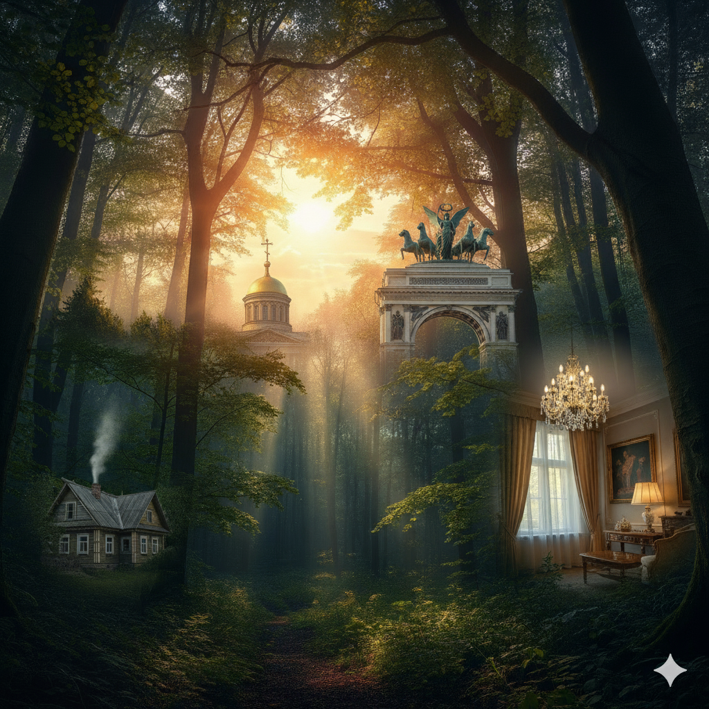 Деревья выглядели необычно: высокие гладкие стволы устремлялись в небо и только на самом верху виднелись могучие раскидистые кроны, нежно позолоченные восходящим солнцем. Внизу слоями покоились полумрак и прохлада, пахло мхом, мятой и прошлогодними листьями, в избытке шуршащими под ногами.