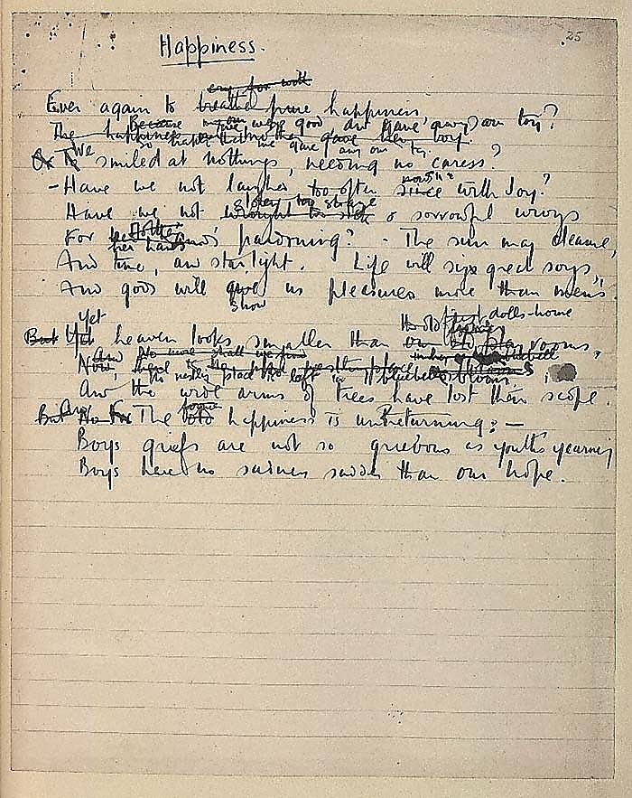 Dedicated to his mother, and with early drafts referring specifically to the happiness of being a mother's boy, Owen said in a letter home of HAPPINESS: