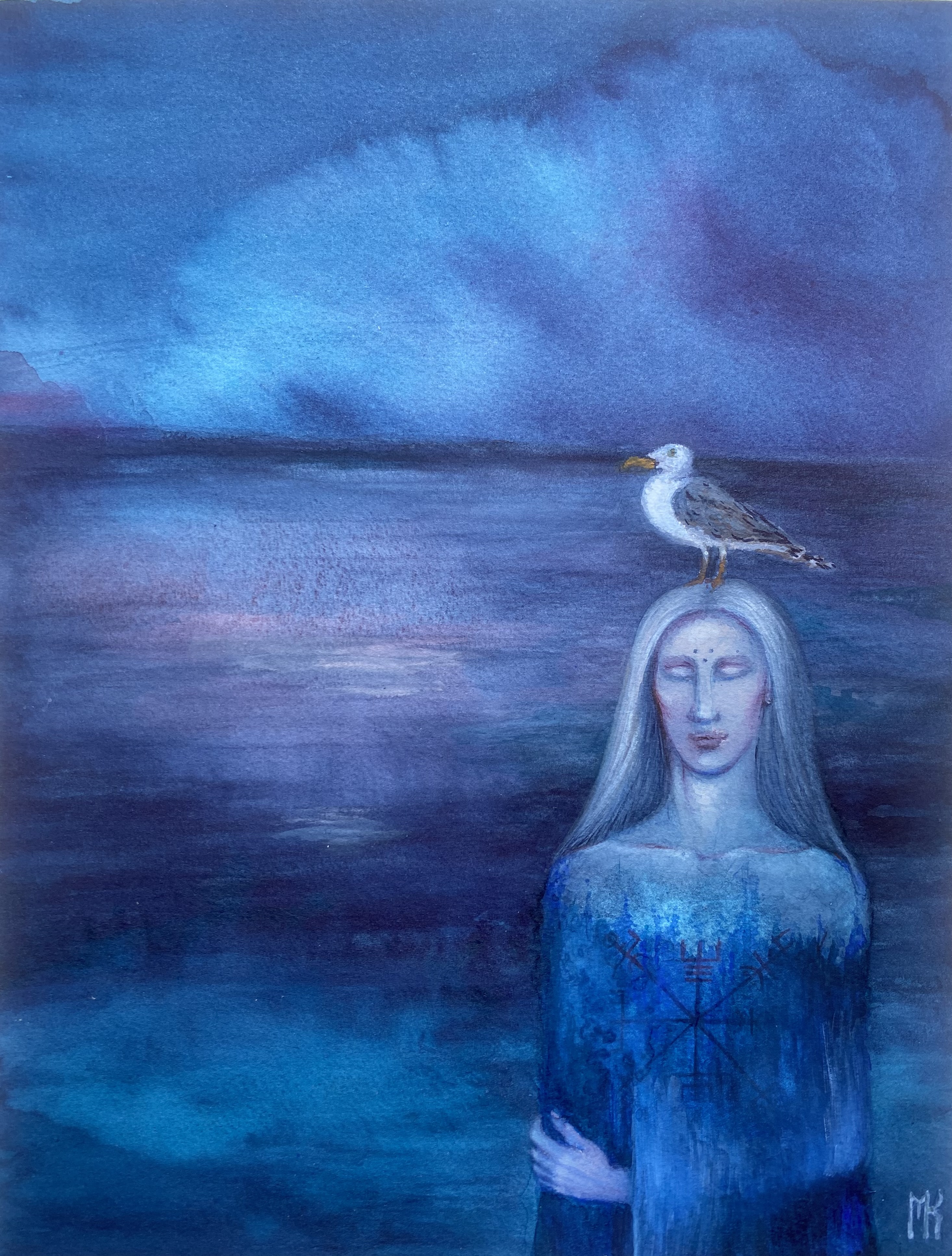 Знак - один исландский гальдрастаф, он показывает направление, не дает сбиться с пути. Хотела его полностью закрасить, но жалко стало, такой красивый.)
