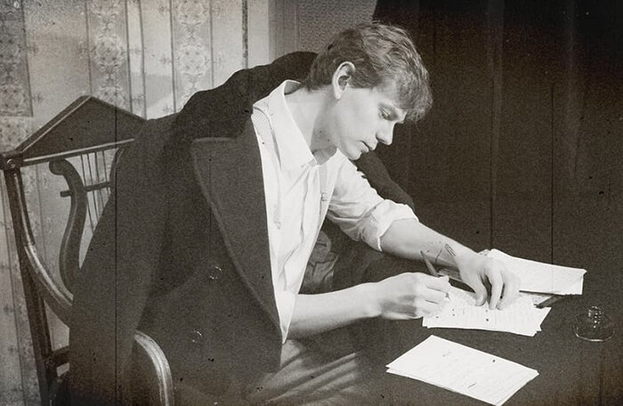 Ну, ладно... Это фото, Катя - за столом - постановочное... Вообще-то он писал не так.