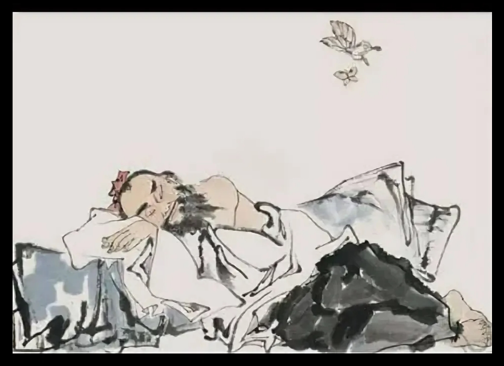 «Однажды я, Чжуан Чжоу, увидел себя во сне бабочкой — счастливой бабочкой, которая порхала среди цветков в своё удовольствие и вовсе не знала, что она — Чжуан Чжоу. Внезапно я проснулся и увидел, что я — Чжуан Чжоу. И я не знал, то ли я Чжуан Чжоу, которому приснилось, что он — бабочка, то ли бабочка, которой приснилось, что она — Чжуан Чжоу.»