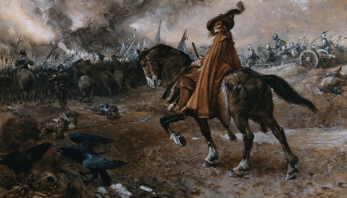 Иллюстрация: Эдгар Банди «Смерть в образе генерала едет на коне по полю битвы», 1911