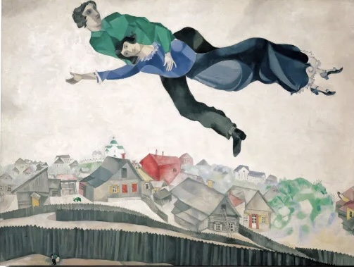 Рук у них на двоих всего две. Одной, левой, он её приобнимает — осторожно, будто боится сломать или уронить. Другую, её руку, она вытянула вперёд — изящно, чуть растопырив пальцы, словно дирижирует этим полётом, задаёт темп и ритм вселенной. Или просто показывает путь, дорогу туда, где их никто не достанет, где нет мещанских сплетен и косых взглядов. Парят горизонтально. Не как птицы — те машут крыльями, а как струи фонтанов в сквере перед бывшим дворцом губернатора, застывшие навеки по воле смотрителя, вовремя закрывшего вентиль.